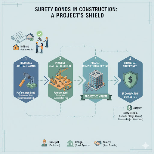Here's an example of how a construction project might use surety bonds: